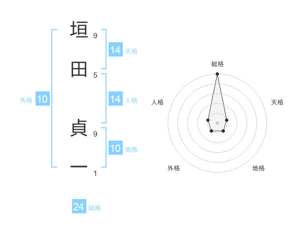 垣田 貞一さんの人格は14画の1点!
