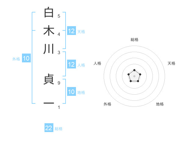 白木川 貞一さんの総格は22画の1点!