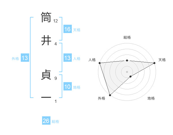 筒井 貞一さんを姓名の画数から五運を鑑定