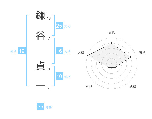 鎌谷 貞一さんの総格は35画の4点!