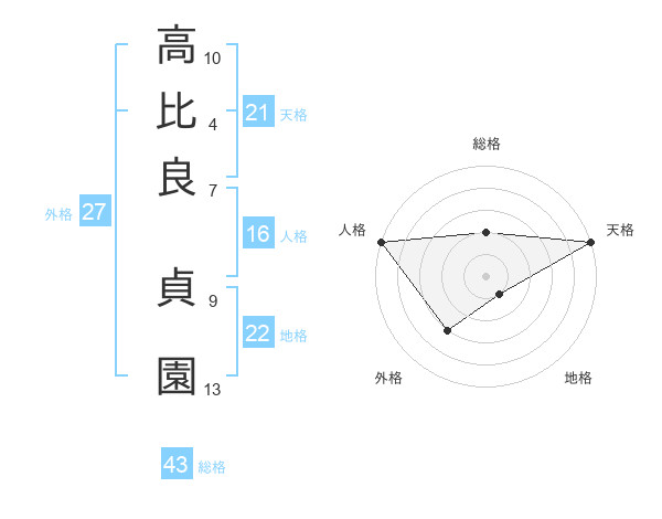 高比良 貞園さんの総格は43画の2点!