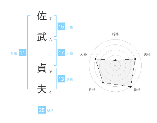 佐武 貞夫さんを姓名の画数から五運を鑑定
