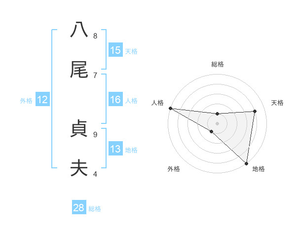 八尾 貞夫さんを姓名の画数から五運を鑑定