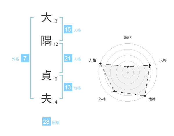 大隅 貞夫さんの人格は21画の5点!