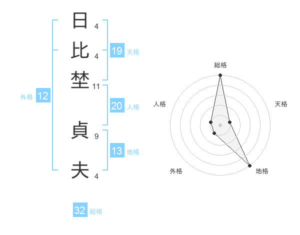 日比埜 貞夫さんの天格は19画の1点!