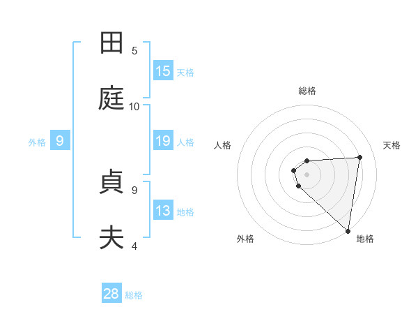 田庭 貞夫さんの総格は28画の1点!