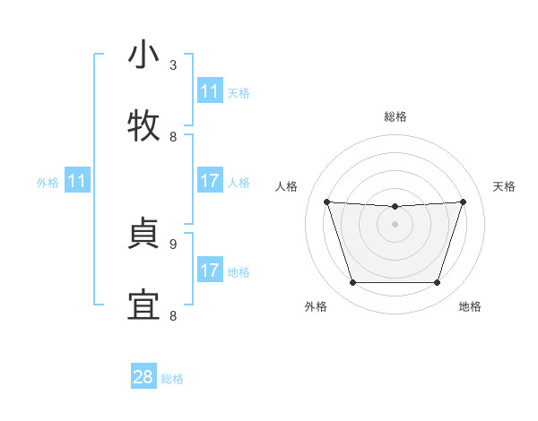 小牧 貞宜さんの総格は28画の1点!