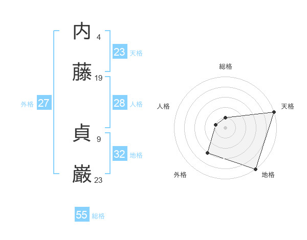 内藤 貞巌さんの天格は23画の5点!