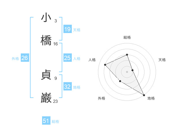 小橋 貞巌さんを姓名の画数から五運を鑑定