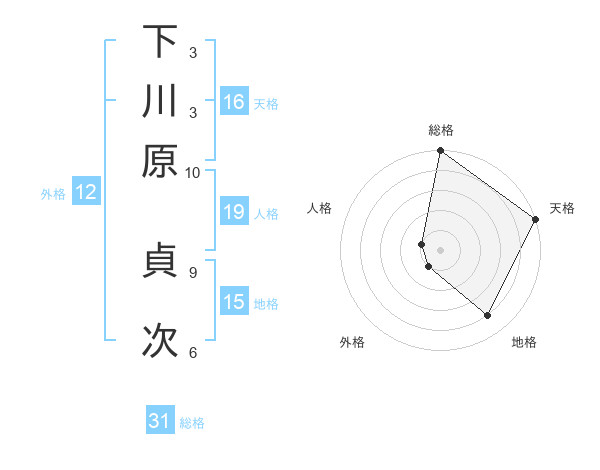 下川原 貞次さんを姓名の画数から五運を鑑定