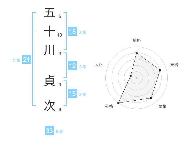 五十川 貞次さんの総格は33画の4点!