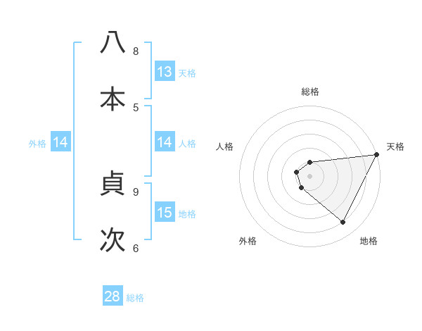 八本 貞次さんの天格は13画の5点!