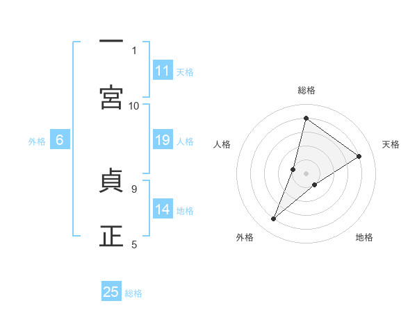 一宮 貞正さんの総格は25画の4点!