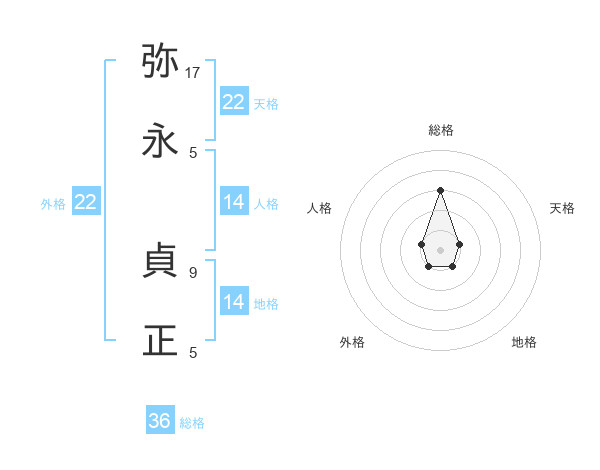 弥永 貞正さんの天格は22画の1点!