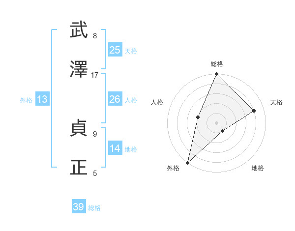 武澤 貞正さんの総格は39画の5点!