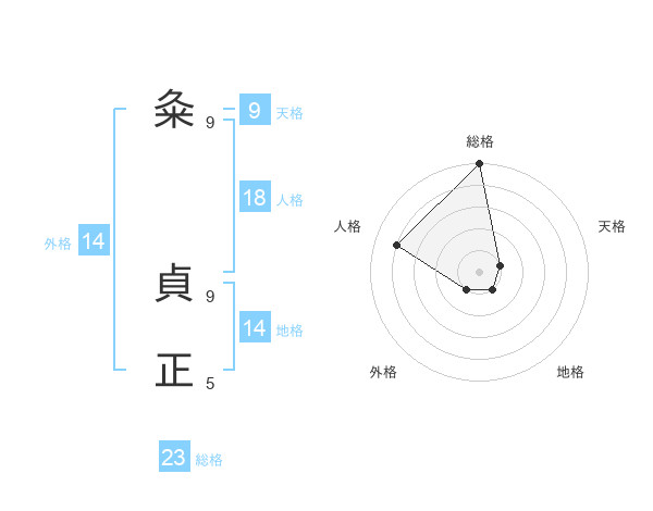 粂 貞正さんの総格は23画の5点!