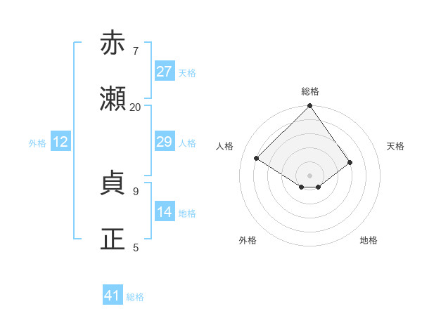 赤瀬 貞正さんを姓名の画数から五運を鑑定