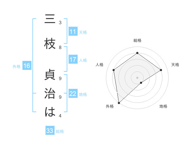 三枝 貞治はさんの総格は33画の4点!