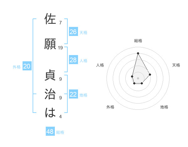 佐願 貞治はさんを姓名の画数から五運を鑑定