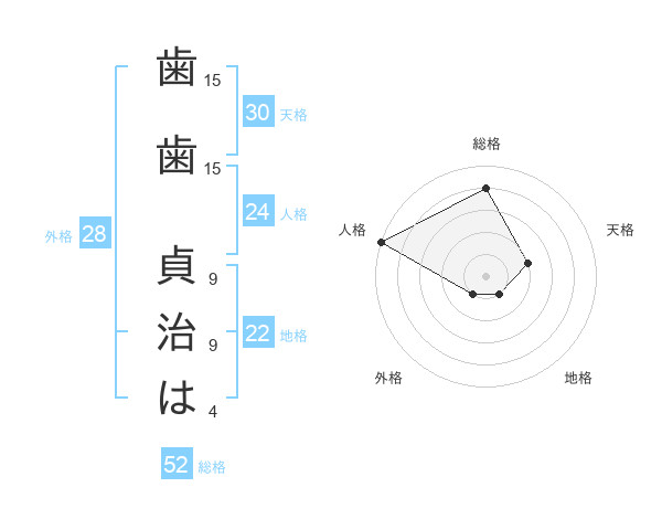 歯歯 貞治はさんの天格は30画の2点!