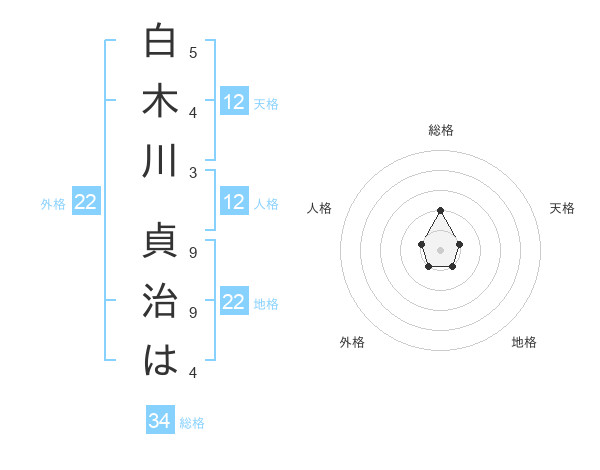 白木川 貞治はさんを姓名の画数から五運を鑑定