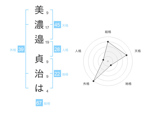 美濃邉 貞治はさんを姓名の画数から五運を鑑定