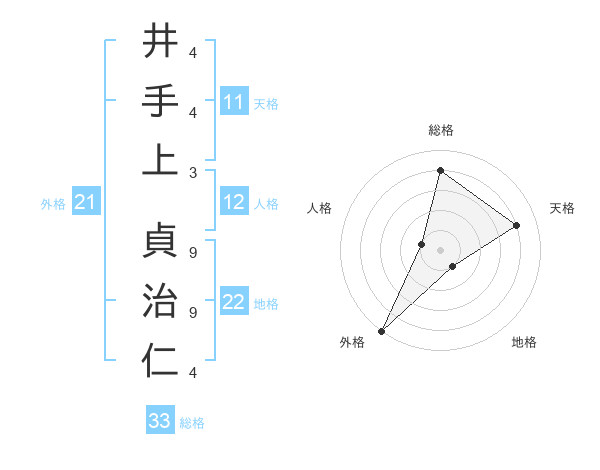 井手上 貞治仁さんの総格は33画の4点!