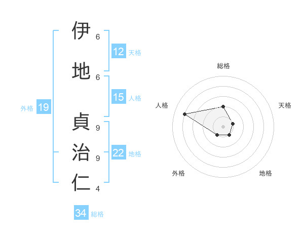 伊地 貞治仁さんの総格は34画の2点!