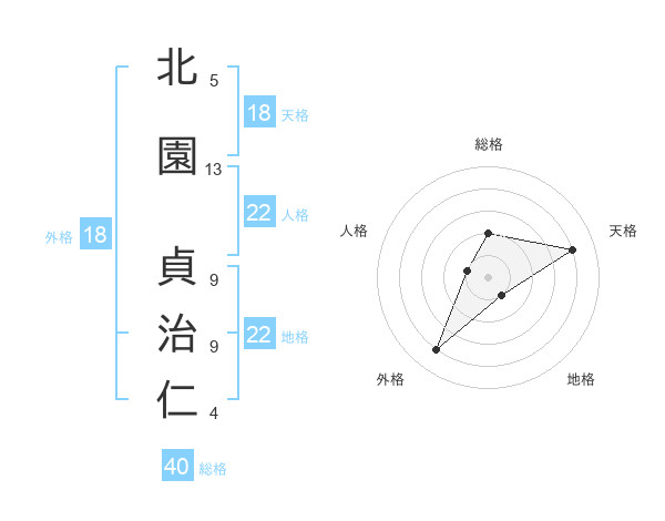 北園 貞治仁さんを姓名の画数から五運を鑑定
