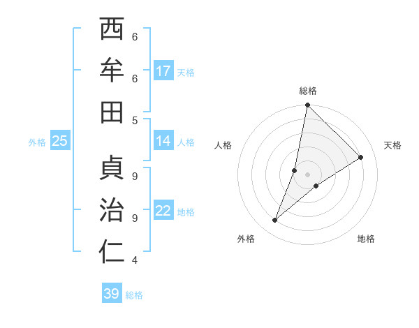 西牟田 貞治仁さんを姓名の画数から五運を鑑定