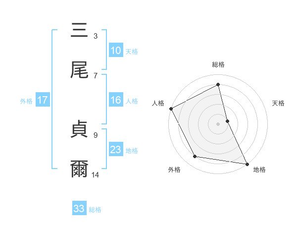 三尾 貞爾さんを姓名の画数から五運を鑑定