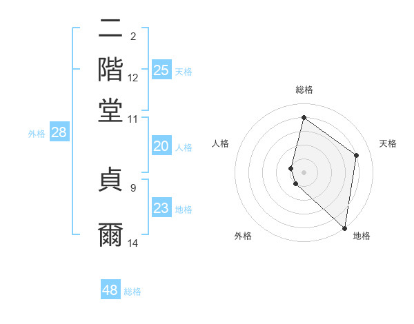 二階堂 貞爾さんの天格は25画の4点!