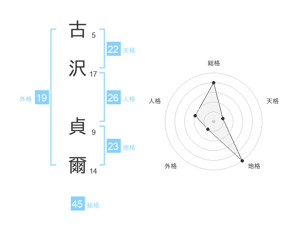 古沢 貞爾さんを姓名の画数から五運を鑑定