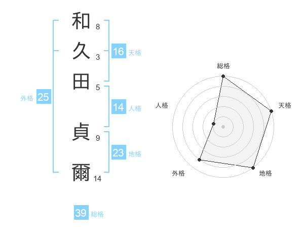 和久田 貞爾さんを姓名の画数から五運を鑑定