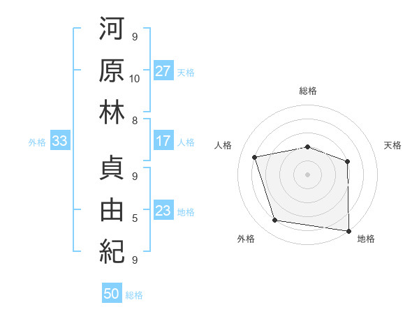 河原林 貞由紀さんの総格は50画の2点!