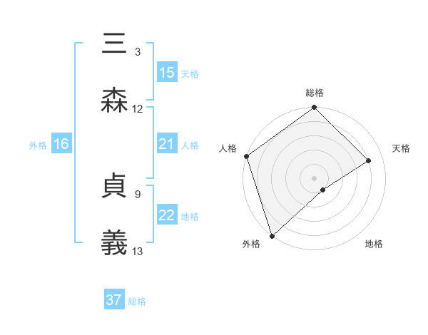 三森 貞義さんの総格は37画の5点!