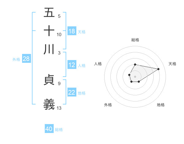 五十川 貞義さんを姓名の画数から五運を鑑定