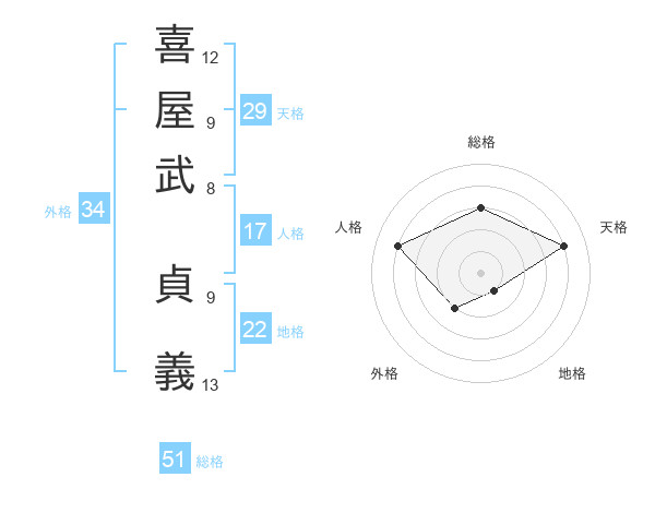 喜屋武 貞義さんの総格は51画の3点!