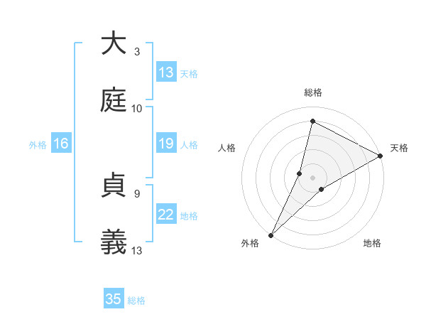 大庭 貞義さんの天格は13画の5点!