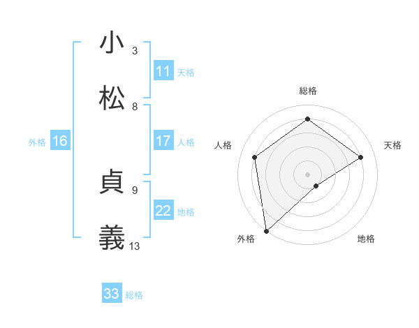 小松 貞義さんの総格は33画の4点!