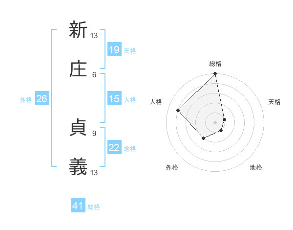 新庄 貞義さんの総格は41画の5点!
