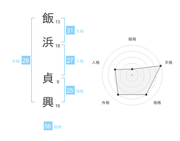 飯浜 貞興さんを姓名の画数から五運を鑑定