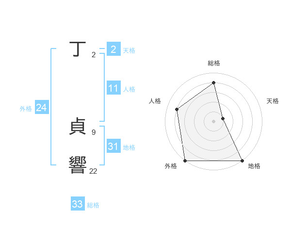 丁 貞響さんの総格は33画の4点!