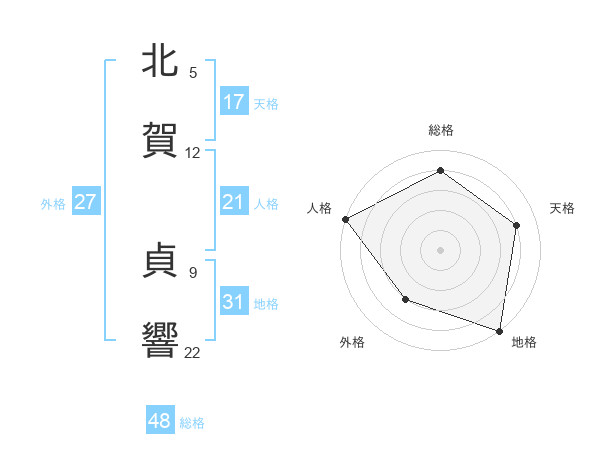 北賀 貞響さんを姓名の画数から五運を鑑定