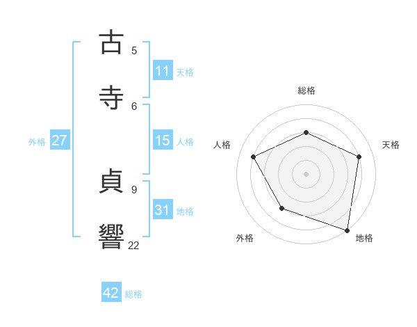 古寺 貞響さんを姓名の画数から五運を鑑定