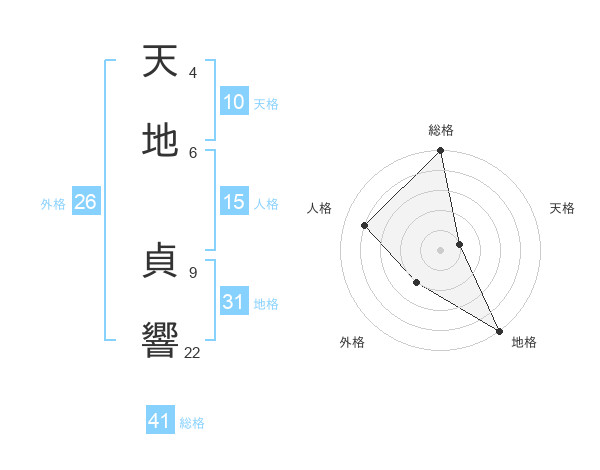 天地 貞響さんの総格は41画の5点!