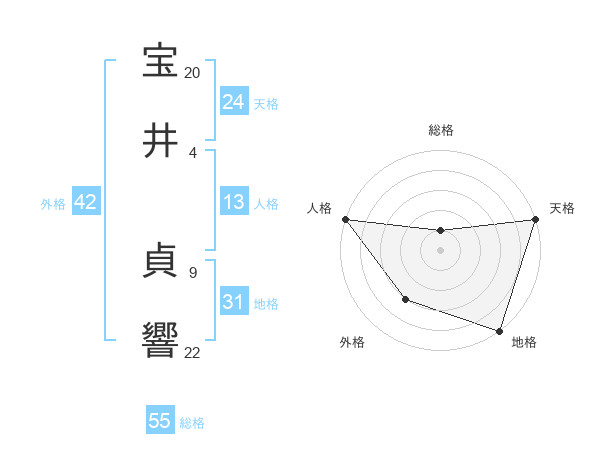 宝井 貞響さんを姓名の画数から五運を鑑定