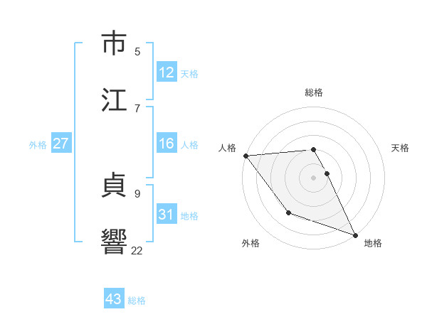 市江 貞響さんの地格は31画の5点!