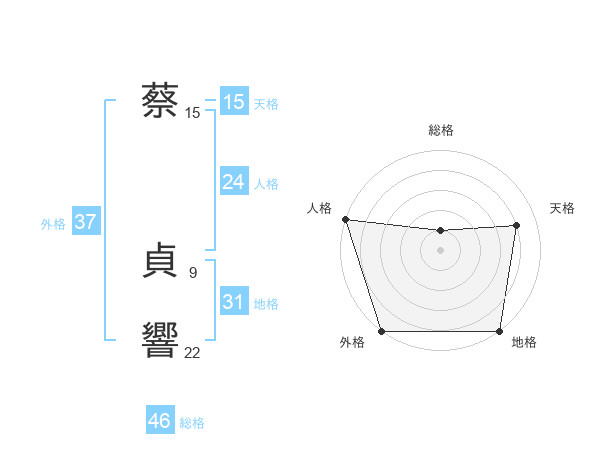 蔡 貞響さんの外格は37画の5点!