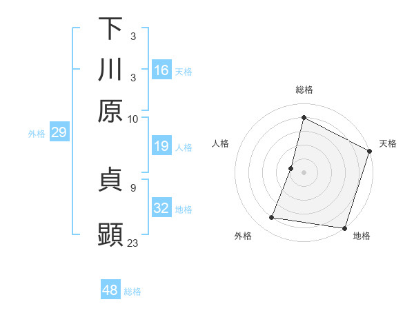 下川原 貞顕さんを姓名の画数から五運を鑑定